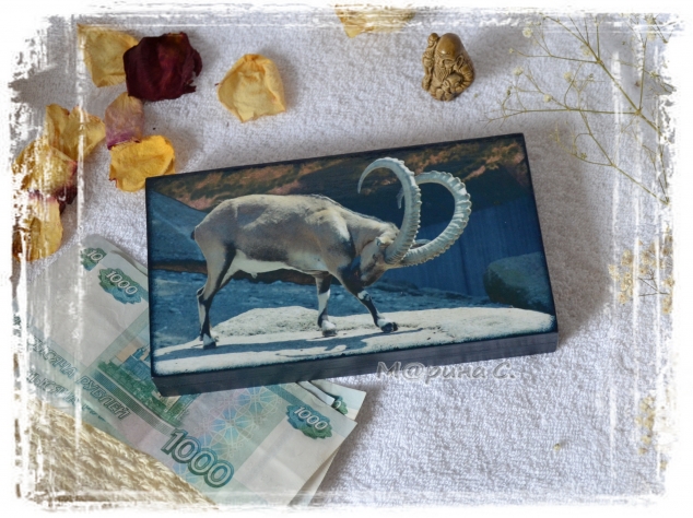 Девочки, вот ещё идеи подарков на Новый Год. Сделала купюрницы с символом 2015 года. Можно так подарить, а можно и с денежкой )))))). Внутри на крышке иероглиф "богатство". По фен-шуй изображение козы является мощным инструментом. На китайском "коза" звучит как "Ян". Если изображение этого животного поместить в доме, то в нём прибудет атмосфера счастья, добра и преуспевания, а особенно если у вас в доме недостаток янской силы (женщин больше, чем мужчин).