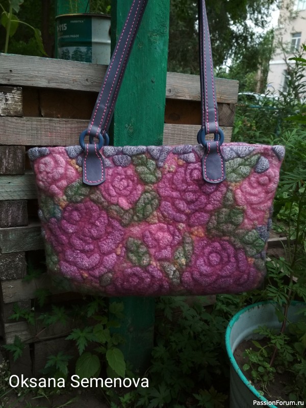 Девочки, добрый день! Выполняю своё ообещание показать готовые работы. Это вторая моя сумочка, сваляная в этой технике ещё летом. С лёгкой руки нашей форумчанки Людочки (Амели) получила название "Каменные розы" . Сумочку купили на стадии полуфабриката. Чему я очень была рада!!! Наверное, именно этот факт вдохновил на новые работы. Востребованность и интерес к этой технике не дали мне остановиться. Поступили заказы , которые обязательно буду показывать дальше. В одном топике они не поместятся. Пока о...