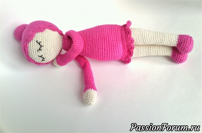Доброго времени суток всем заглянувшим. Представляю Вашему вниманию куклю-сплюшку. Зовут её Соня. Связана из 100% хлопка (детский хлопок пехорка). Куколка 30 см. Все детали ввязаны в процессе работы. Нет опасных для ребёнка деталей, поэтому спокойно можно класть в кроватку. Спасибо за внимание.