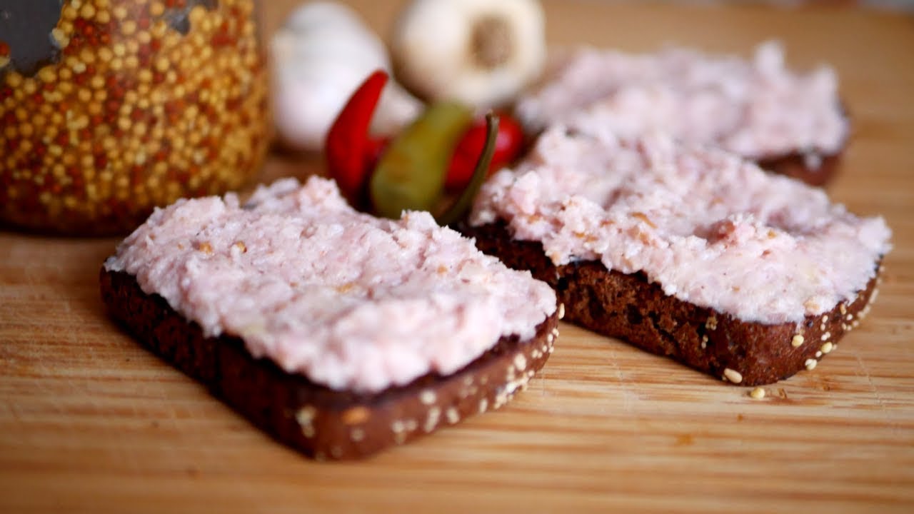 Вкусная, недорогая, очень простая в приготовлении намазка-закуска подойдет и на праздник, и для дежурного бутерброда. Ингредиенты: 200 грамм жирной свиной грудинки; 2-3 зубчика чеснока; 1 ч.л. горчицы; смесь перцев; черный хлеб.